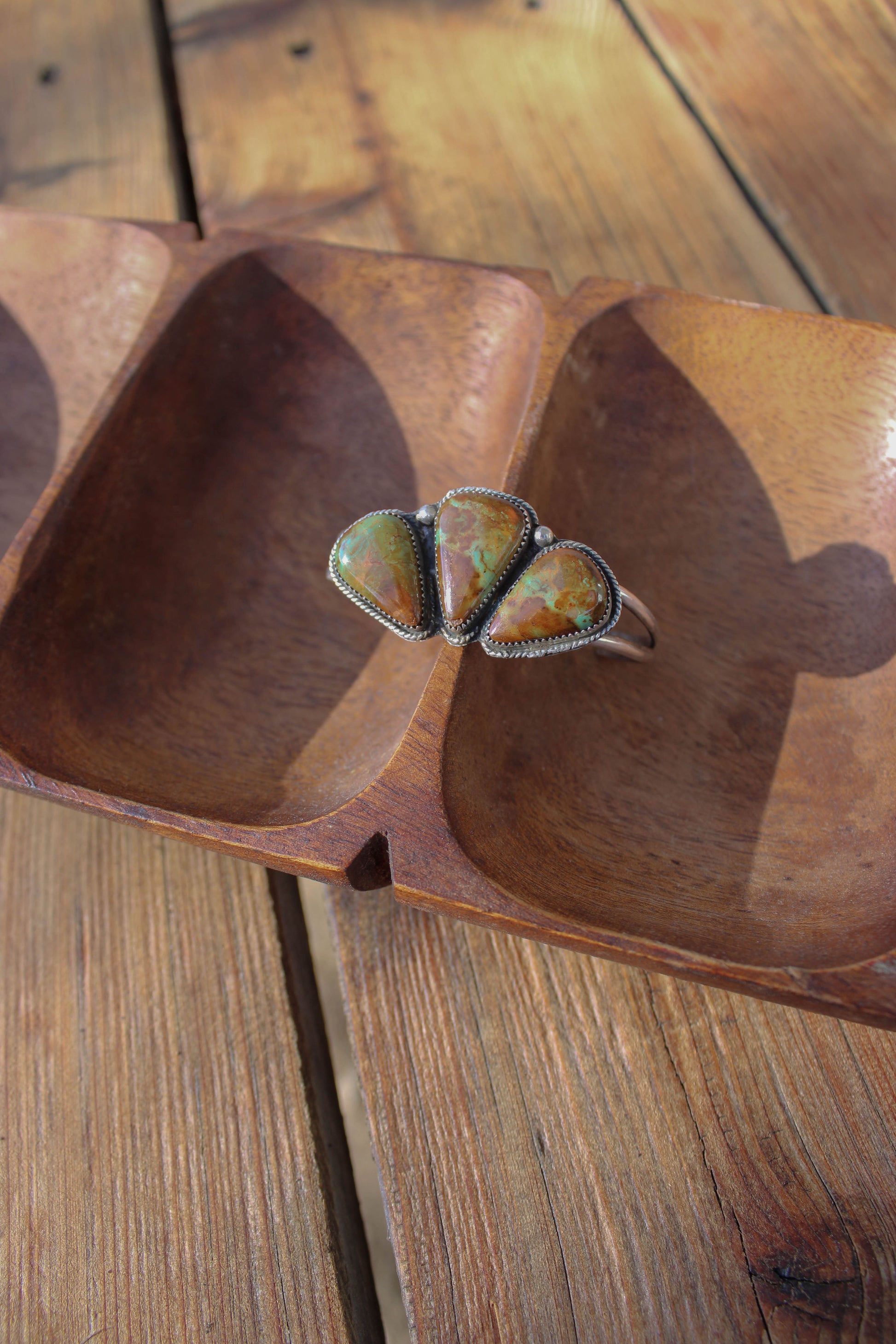 This 3 stone statement cuff is made with Baja Turquoise and .925 sterling silver. It has a matching set of earrings in the collection that make for a beautiful set.