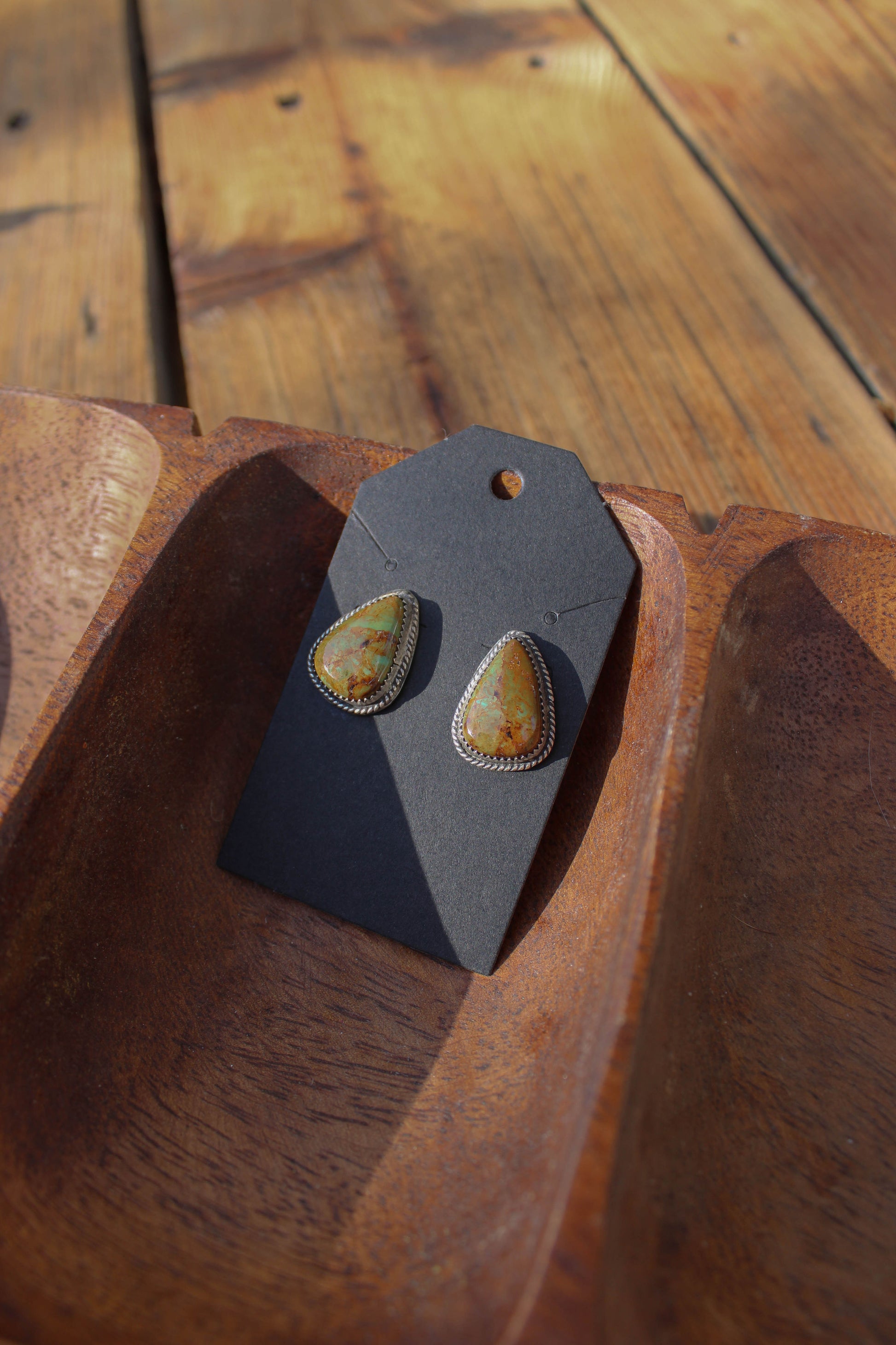 These studs are made with Baja Turquoise and .925 sterling silver. They have a matching cuff in the collection that makes for a beautiful set.